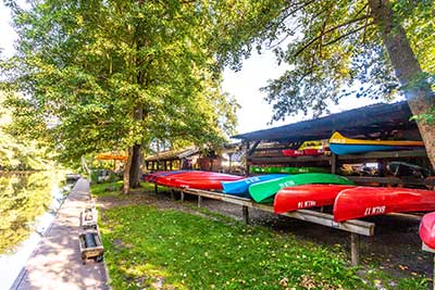 Im Mietpreis inklusive: eine Wasserwanderkarte mit Tourenvorschlag, pro Person ein Paddel, eine Schwimmweste je nach Verfügbarkeit.