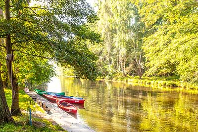 Der Bootsverleih Keutel befindet sich in Lübben am Umflutkanal der Spree, parallel zur Hauptspree.