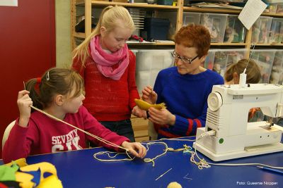 Wer mag, kann sich in unterschiedlichsten Handarbeits- und Basteltechniken ausprobieren, unter Anleitung das Sticken, Stricken, Häkeln, Nähen an der Nähmaschine kennenlernen oder Grundkenntnisse verbessern.