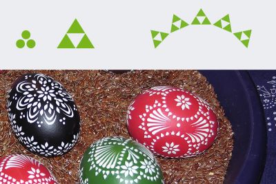 Der Vorteil der Bossiertechnik: die aufgetupften Muster und Ornamente verbleiben auf dem Osterei. Somit fällt das Entfernen des Wachses von den Eiern weg. Auch das zeitaufwändige, mehrmalige Einfärben der Ostereier, wie bei der Wachsreservetechnik, entfällt.