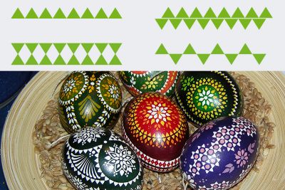 Aus drei im Dreieck angeordneten Punkten auf einem Osterei entsteht das kirchliche Symbol für die Dreieinigkeit von Gottvater, Sohn und Heiligem Geist. Zusätzlich symbolisiert es Einigkeit der Familie von Vater, Mutter, Kind. Man kann hierfür auch drei Dreiecke miteinander kombinieren.