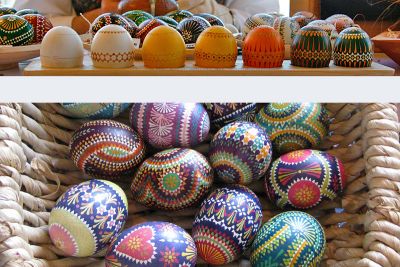 Die Batiktechnik der sorbischen Ostereier, auch Wachsreservetechnik genannt, ist eine der zeitaufwändigsten Wachsmaltechnik. In mehreren Durchgängen werden Muster und Symbole mit Wachs auf das Ei getupft. Zwischen dem Wachsen muss das Osterei immer wieder in verschiedenen Farbbädern getaucht werden und trocknen. Erst so entstehen diese unverwechselbaren Ostereier nach sorbischer Art.