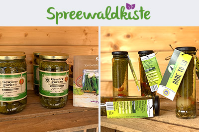 Wer sich einen Vorrat an echten spreewälder Gurken anlegen möchte, wird auf dem regionalen Onlineshop der Spreewaldkiste fündig. Hier findet man nicht nur die beliebten Gewürzgurken, sondern auch die "Gurke to go" im Glas, eine einzelne Gurke im Miniglas. Vielleicht auch eine tolle Idee als Geschenk. Und bei den "DDR Gewürzgurken" schwingt ein wenig Nostalgie mit: nach altem DDR Rezept gewürzt und zuckerreduziert.